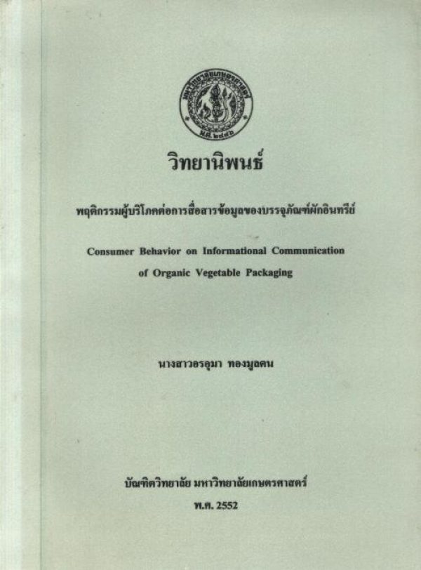 พฤติกรรมผู้บริโภคต่อการสื่อสารข้อมูลของบรรจุภัณฑ์ผักอินทรีย์ [วิทยานิพนธ์มหาบัณฑิต]